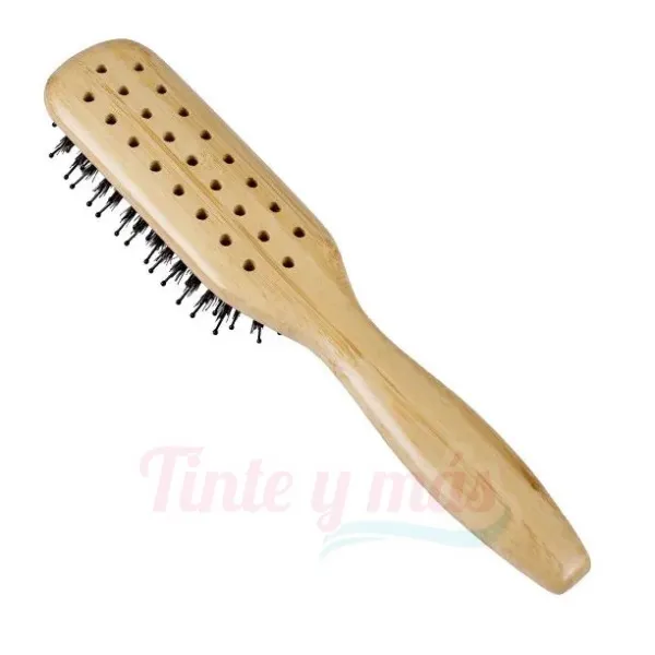 Cepillo de madera de bambú con un diseño innovador «Vent Cushion» lo que permite acelerar el secado y peinado cuando se utiliza junto con un secador. La almohada y la cabeza incluyen agujeros para mejorar el flujo de aire caliente y evita los daños por sobrecalentamiento.