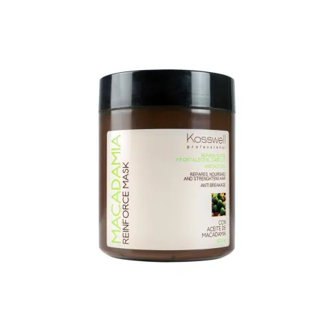 Reinforce Mask mascarilla reparadora y fortificante con aceite de Macadamia. Gracias a sus principios activos el cabello se regenera desde el interior recobrando su elasticidad y quedaando protegidos contra la rotura.