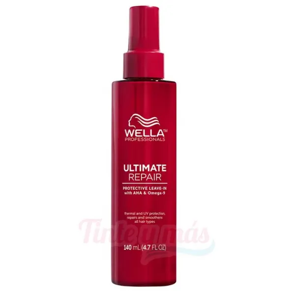 Serum Ultimate Repair de Wella Professionals protege su cabello contra la rotura, los rayos UV y los daños mecánicos. Reduce el frizz por hasta 72 horas*. Aplicar en el cabello antes de secarlo con secador para protegerlo del calor del peinado. Ofrece protección contra el calor hasta 230°C .