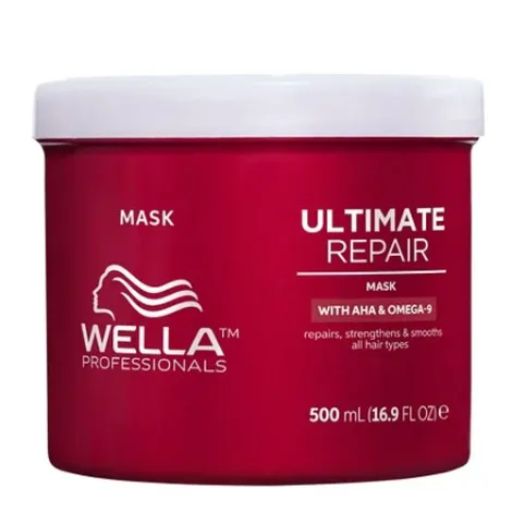 La mascarilla Wella Ultimate Repair contiene alfa hidroxiácido (AHA) y Omega-9, lo que garantiza que incluso el cabello más dañado esté visiblemente reparado. Penetra profundamente en el cabello para restaurar los enlaces de la fibra capilar. Contiene Omega-9 que nutre el exterior de la fibra capilar y restaura la barrera protectora del cabello.
